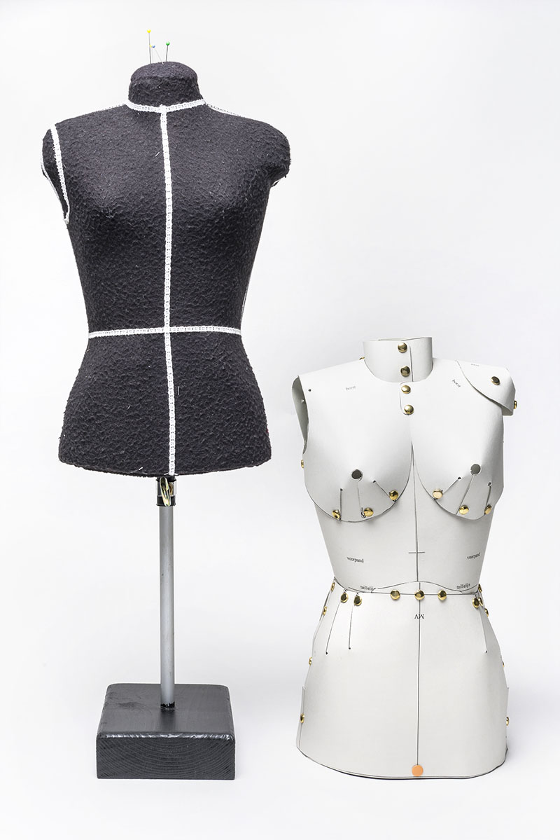 Een paspopje op halve schaal is een uitstekend hulpmiddel om -met weinig stofverbruik- de eigen ontwerpen uit te proberen en te controleren of het gewenste resultaat wordt bereikt. Behalve in de eendaagse workshop is een paspopje inclusief verstelbaar standaardje ook te verkrijgen voor € 79,50.